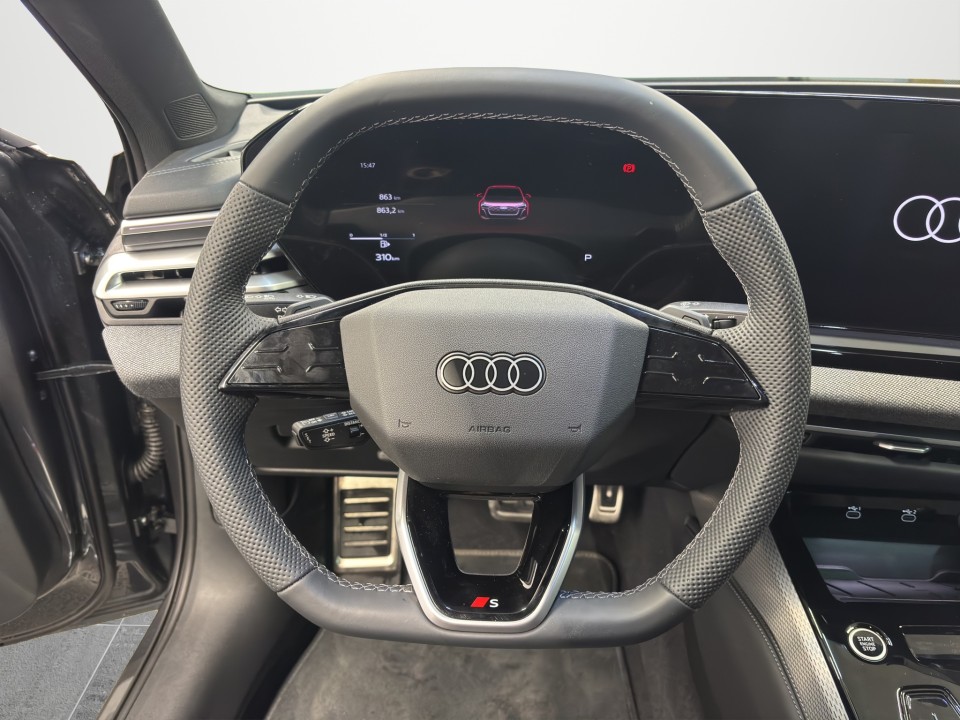 - insertie pe volan cu aspect cromat emblema S, piele perforata si cusaturi in contrast (6F7)